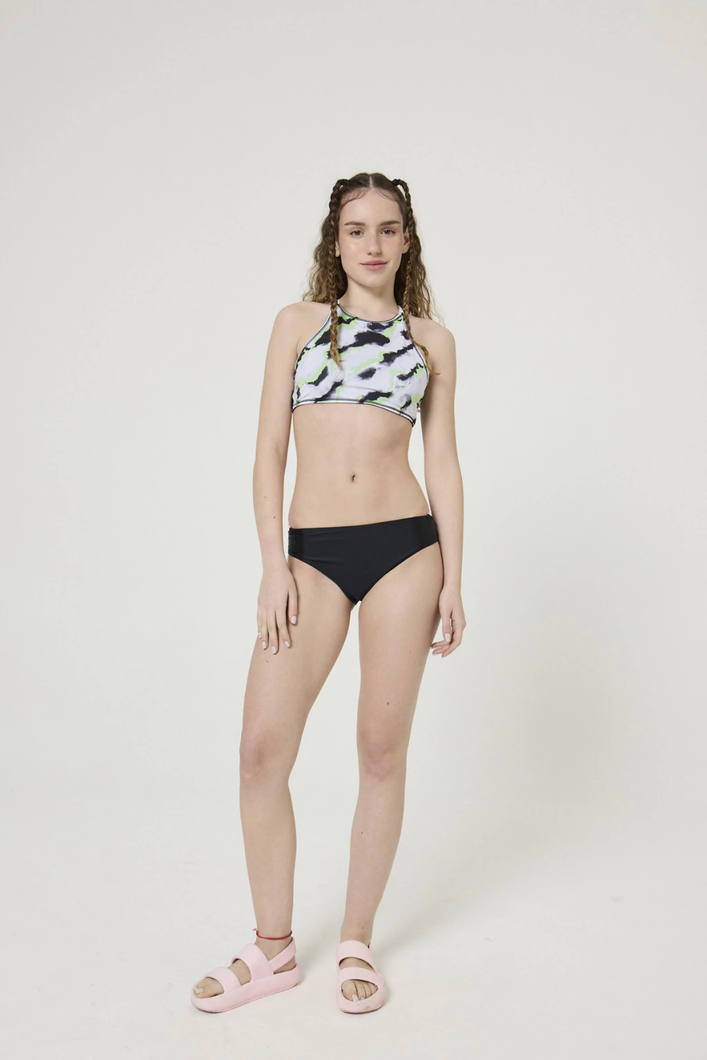 El verano pide color, movimiento y looks con onda, y este traje de baño de dos piezas tiene todo eso y más. Forma parte de SPLASH, la línea más divertida de BUDDIES, pensada para la pile, el mar y cada momento bajo el sol. El top se ata en la espalda y se adapta súper bien al cuerpo, con una estampa que resalta por sus colores y diseño. Es cómodo, canchero y perfecto para saltar olas o tirarte de bomba en la pile sin preocuparte por nada. La bombacha tiene un calce ideal y un detalle que marca la diferencia: tiritas de color en los costados, que suman estilo y un toque alegre a un diseño que ya de por sí es un éxito. Confeccionado en tricot de alta calidad, este conjunto te acompaña en cada plan veraniego, siempre con la comodidad y el diseño que distingue a BUDDIES. Ponete Splash, jugátela con color y disfrutá el verano como más te gusta.