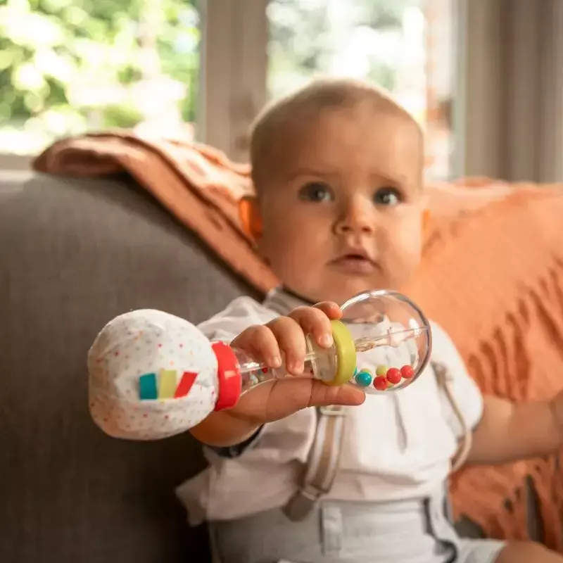 El bebé puede agitarlo para ver y oír el ruido de las bolas multicolores.