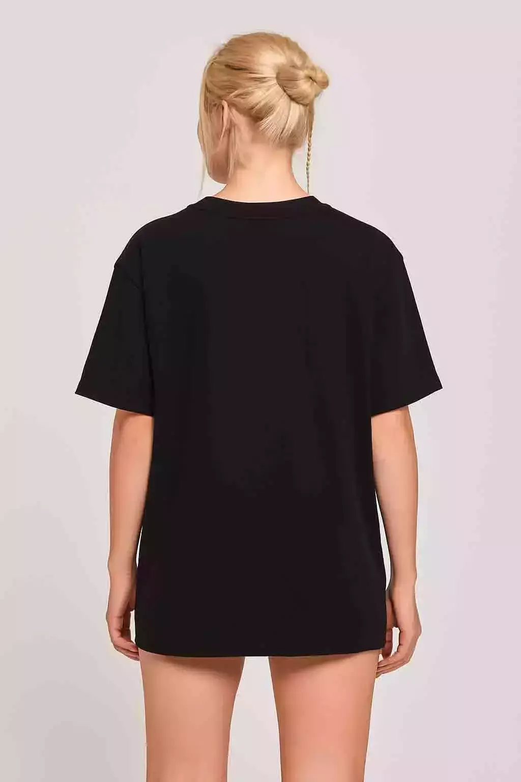 Remeron unisex de calce oversize, hecha de jersey 100% algodón con magas cortas y cuello en ribb, lleva estampa frontal Q insignia de marca. Perfecto para un look casual. La modelo mide 1.65m y lleva un talle S. El modelo mide 1.81m y lleva un talle L. ¡Un basico que no puede faltar!