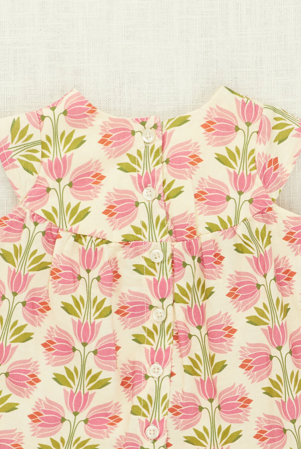 Blusa estampada manga corta, cartera en la espalda con botones.